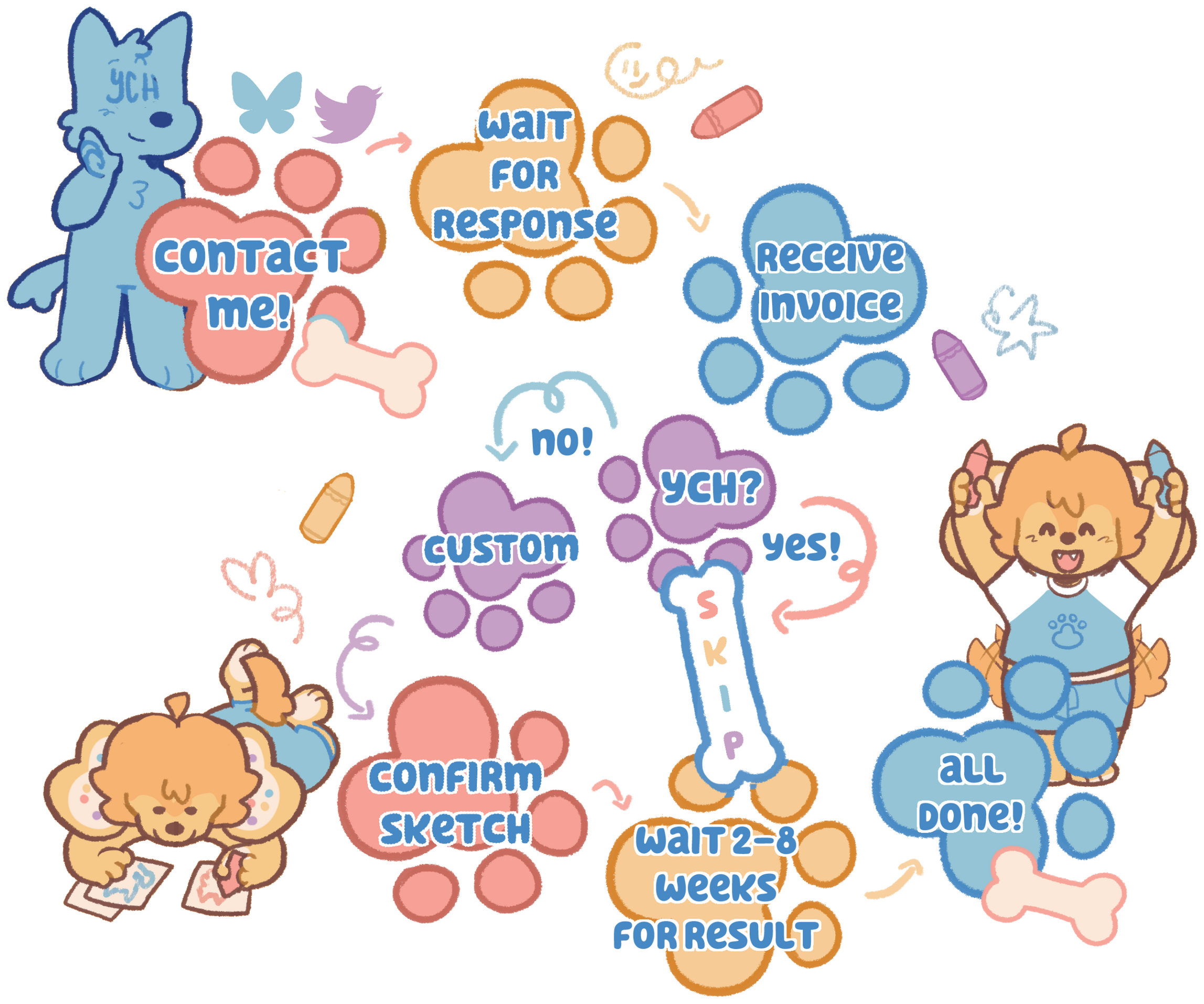 Anthro Designs: 100+ USDCustom character drawn inspired by you! based on moodboards, songs, colours, etc.Accessories are +5USD each unless they are small (collar, piercings, etc.)